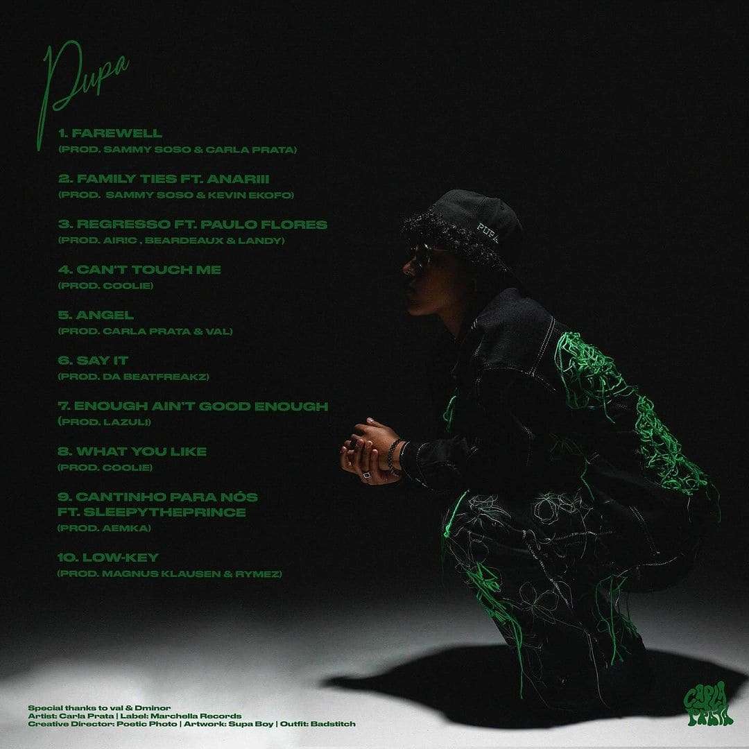 Após lançar o single “Regresso” com a participação do grande artista Paulo Flores, Carla Prata anuncia seu aguardado primeiro álbum de estreia, intitulado “PUPA”. O álbum contará com 10 faixas no total, e o single “Regresso” também fará parte dele.